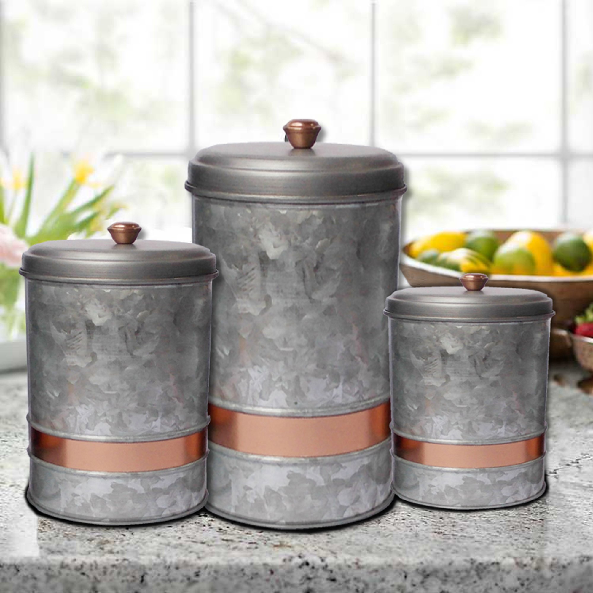 Galvanized Metal Lidded Canister With Copper Band, Set of Three, Galvanized Metal Lidded Canister With Copper Band, Set of Three, Galvanized Metal Lidded Canister With Copper Band, Set of Three, Galvanized Metal Lidded Canister With Copper Band, Set of Three, Galvanized Metal Lidded Canister With Copper Band, Set of Three, Galvanized Metal Lidded Canister With Copper Band, Set of Three,